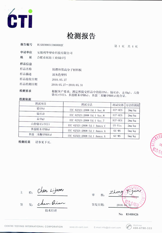 阻燃环保高分子材料板检测报告1